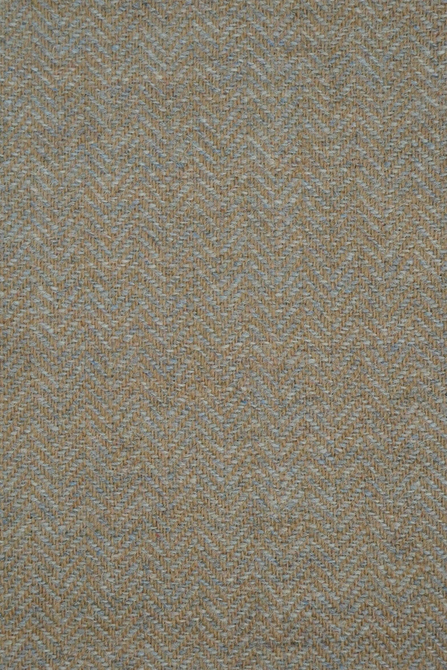 Lightweight Shetland wool Breanish Tweed. Handwoven at our workshop on the Isle of Lewis, Scotland. Light brown/blue herringbone.